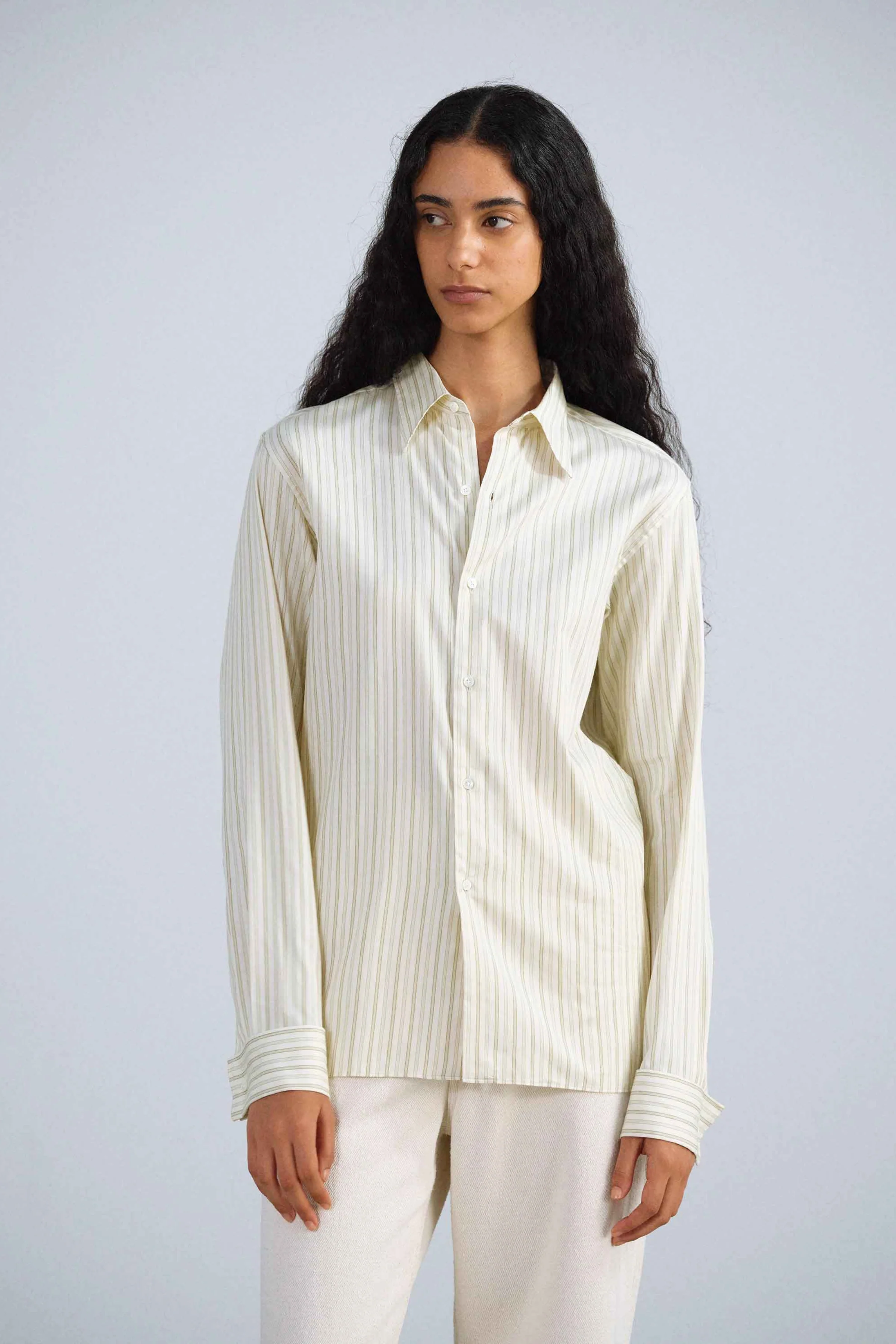 - Cotton-silk stripe shirt in finely woven high-density fabric